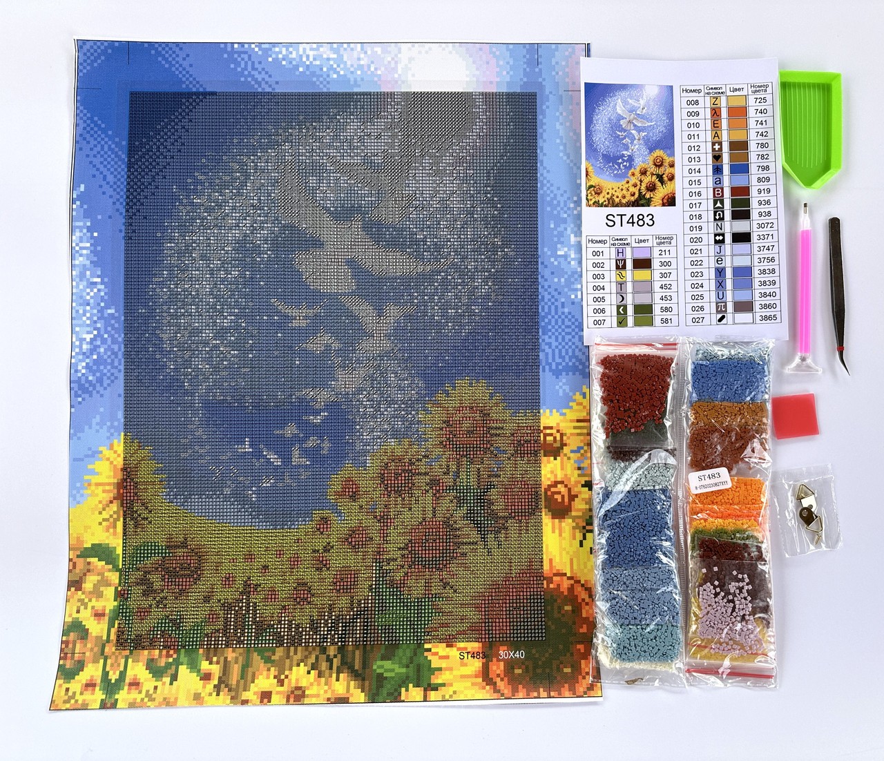 Набори виготовлені з екологічно чистих матеріалів. Всі алмазики одинакового розміру 2.5х2.5мм., їх кількість у наборі є достатньою, навіть ще й із запасом. Картини повністю закладаються алмазами. Квадратна форма алмазу дозволяє закласти всю поверхню полотна не залишаючи проміжків.