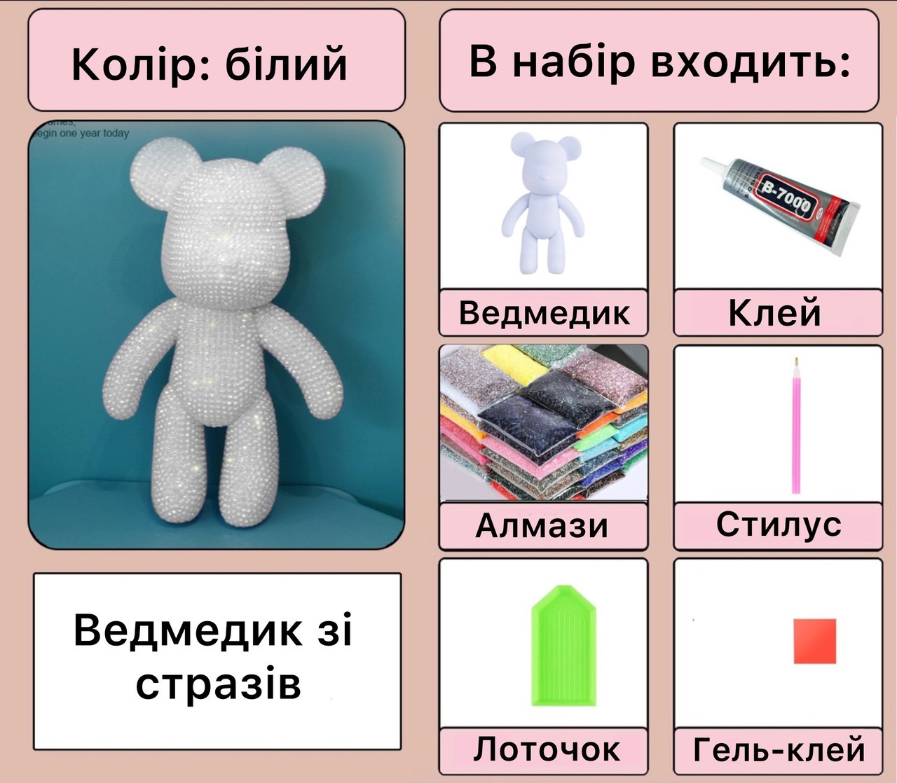 • Унікальний Дизайн: Кожен ведмедик – це витвір мистецтва, що дарує вам можливість створити неповторний шедевр своїми руками.