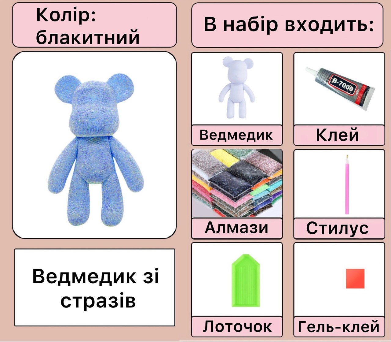 • Унікальний Дизайн: Кожен ведмедик – це витвір мистецтва, що дарує вам можливість створити неповторний шедевр своїми руками.