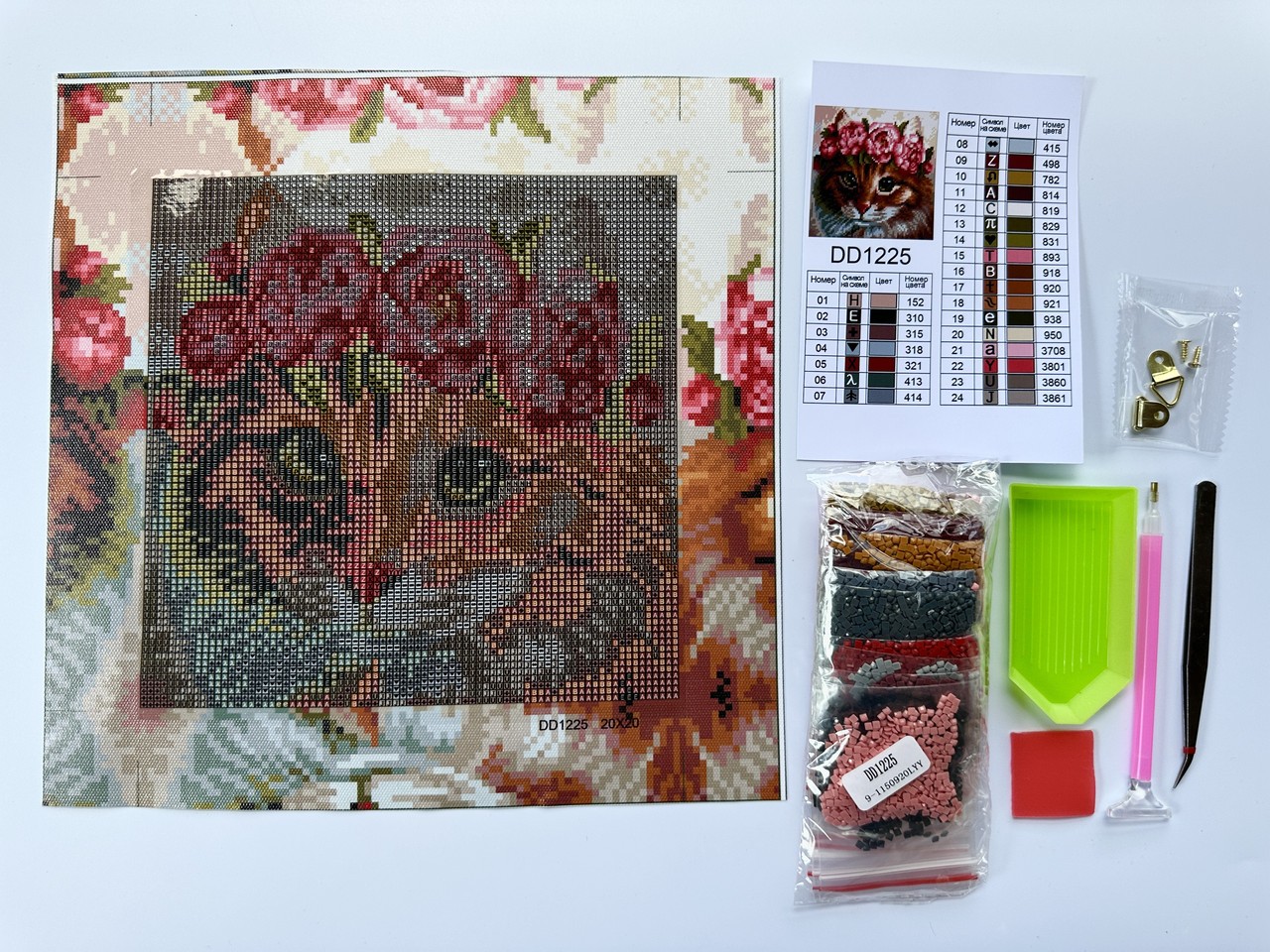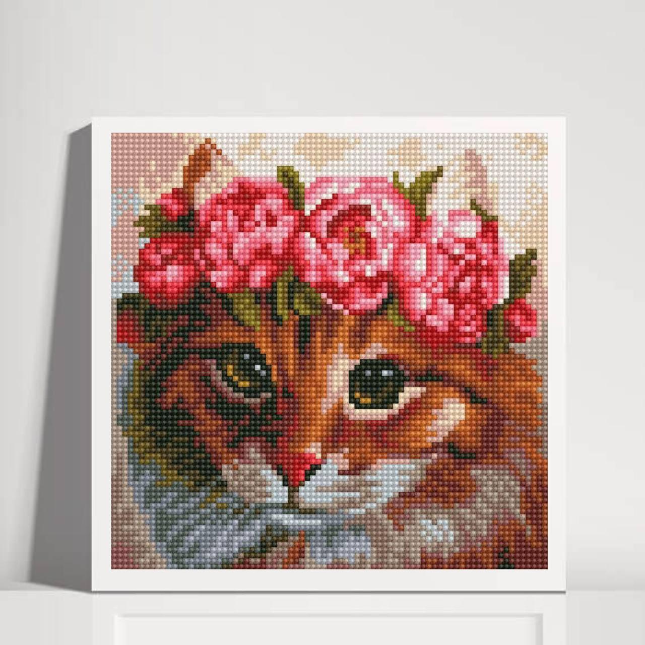 Алмазна вишивка 20×20 Кіт з вінком DD1225