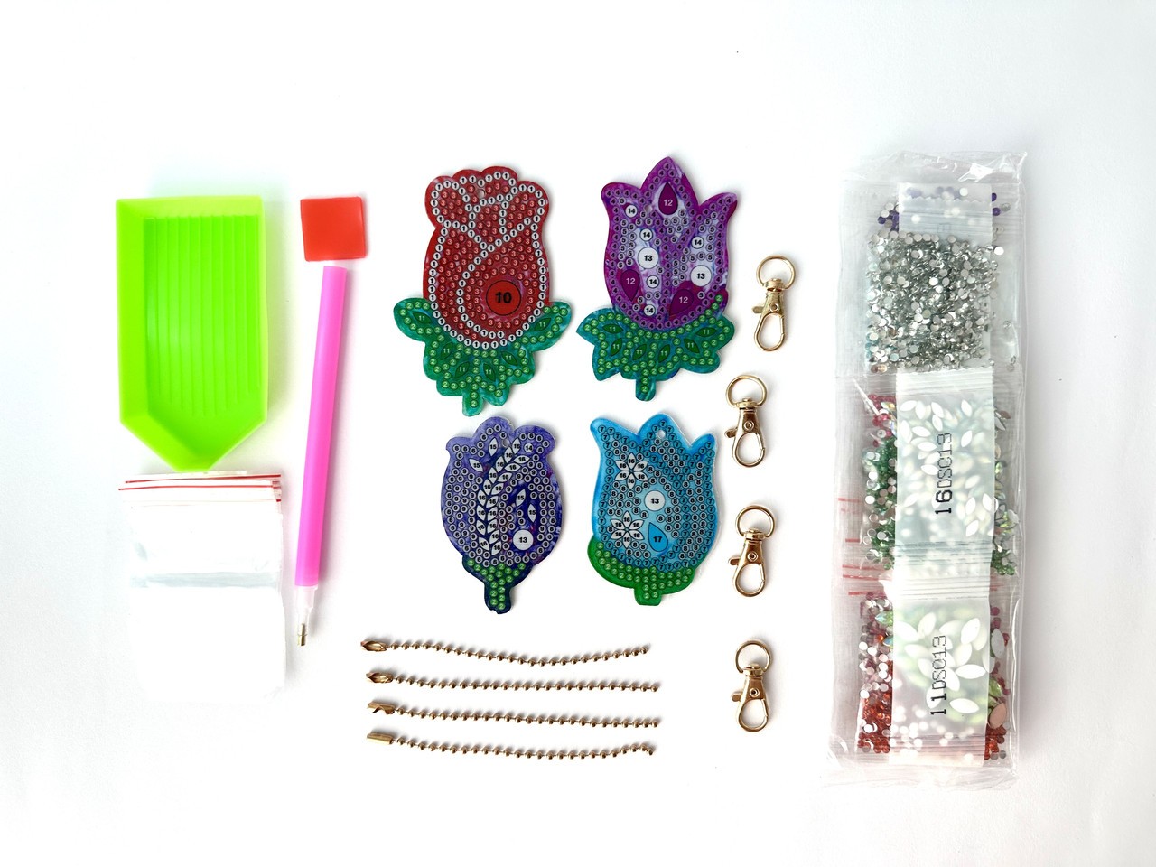 Брелки для алмазної мозаїки Тюльпанчики 4шт BR23