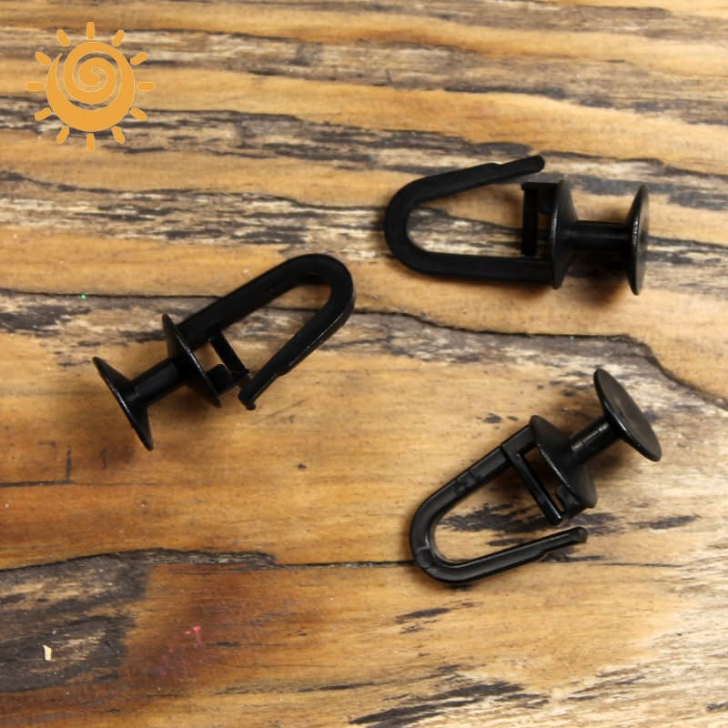 Виготовлений із міцного зносостійкого пластику, гачок має чорний колір, який гармонійно поєднується з темними карнизами або контрастно виглядає на світлих шторах. Такий відтінок додає елегантності та стриманості інтер’єру.