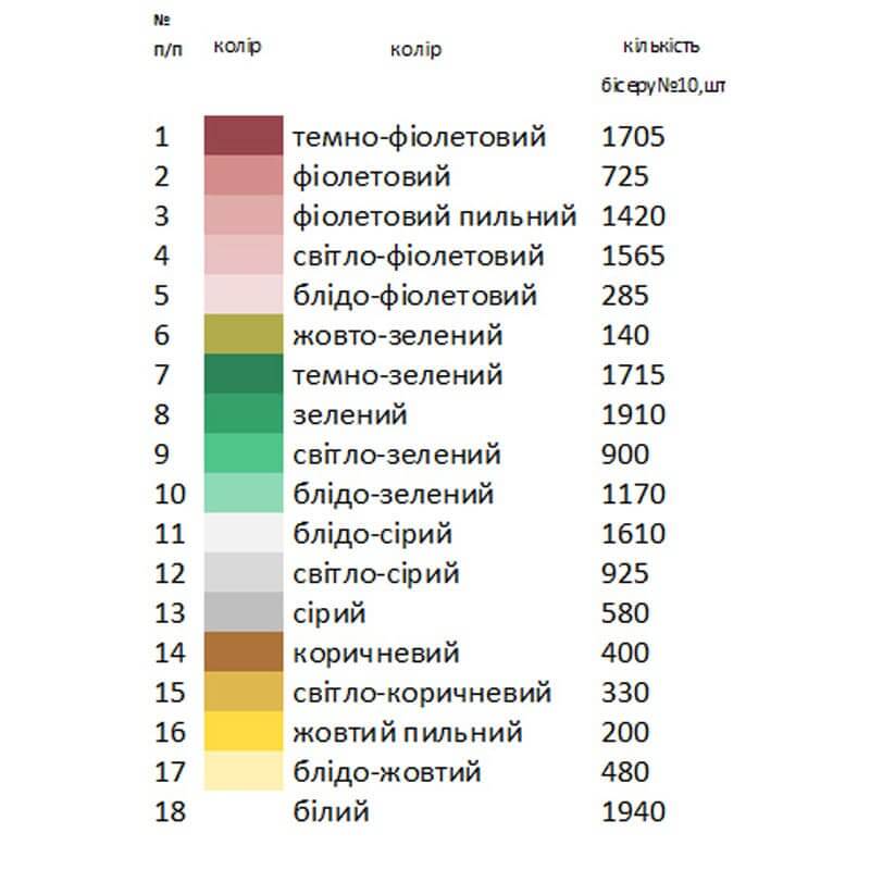 При бажанні комплектуємо чеським бісером з 15% запасом, а також ниткою для бісеру та голкою.