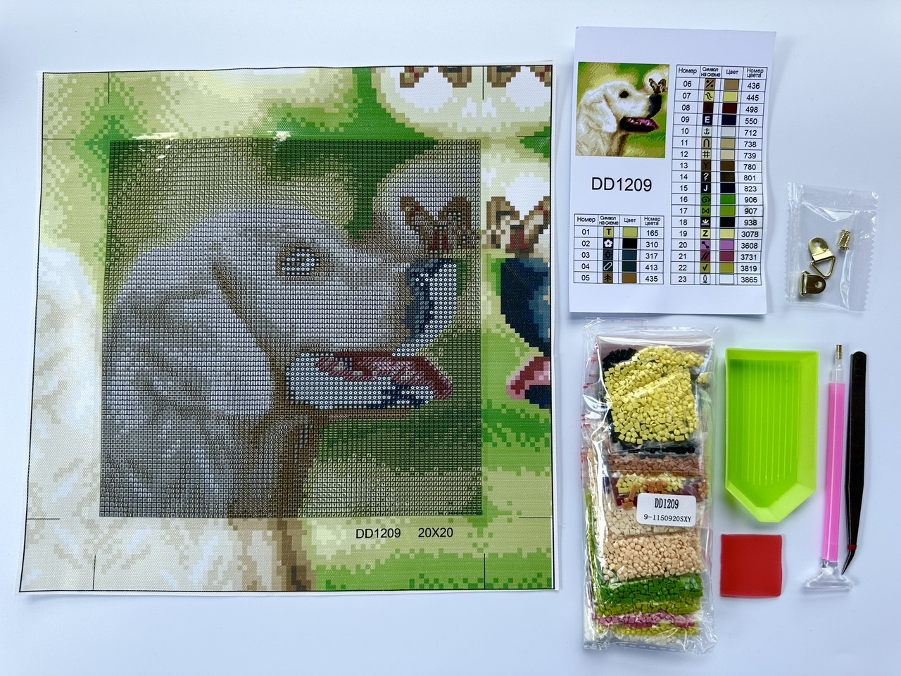 Набір алм азної мозаїки 20х20 Собачка з метеликом DD1209