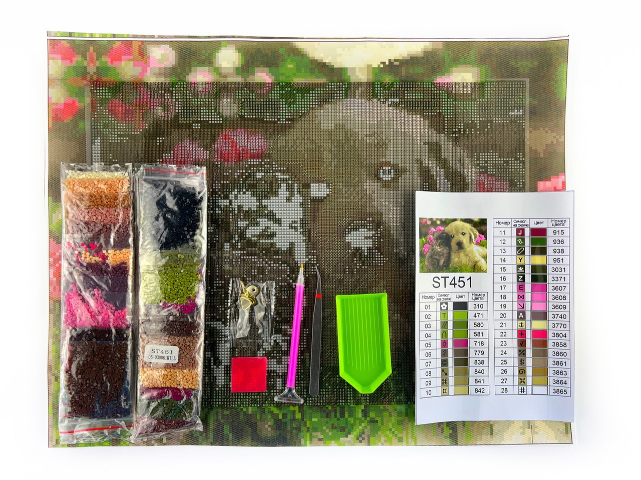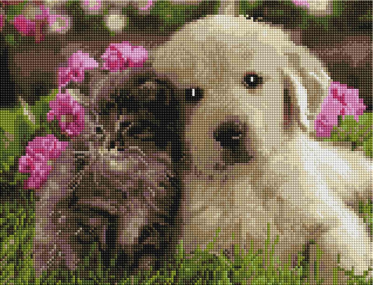 Набір алмазної мозаїки 30х40 Котик і собачка ST451
