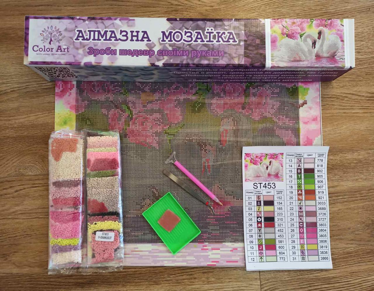 Набір алмазної мозаїки 30х40 Пара лебедів у квітах ST453