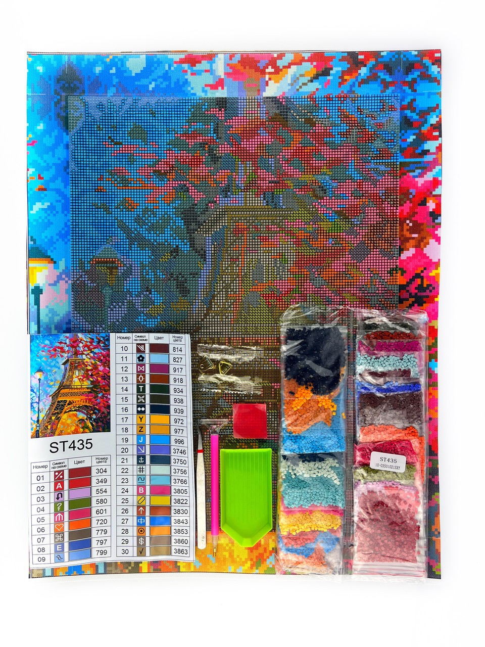 Набір алмазної мозаїки 30х40см Ейфелева вежа в квітах ST435