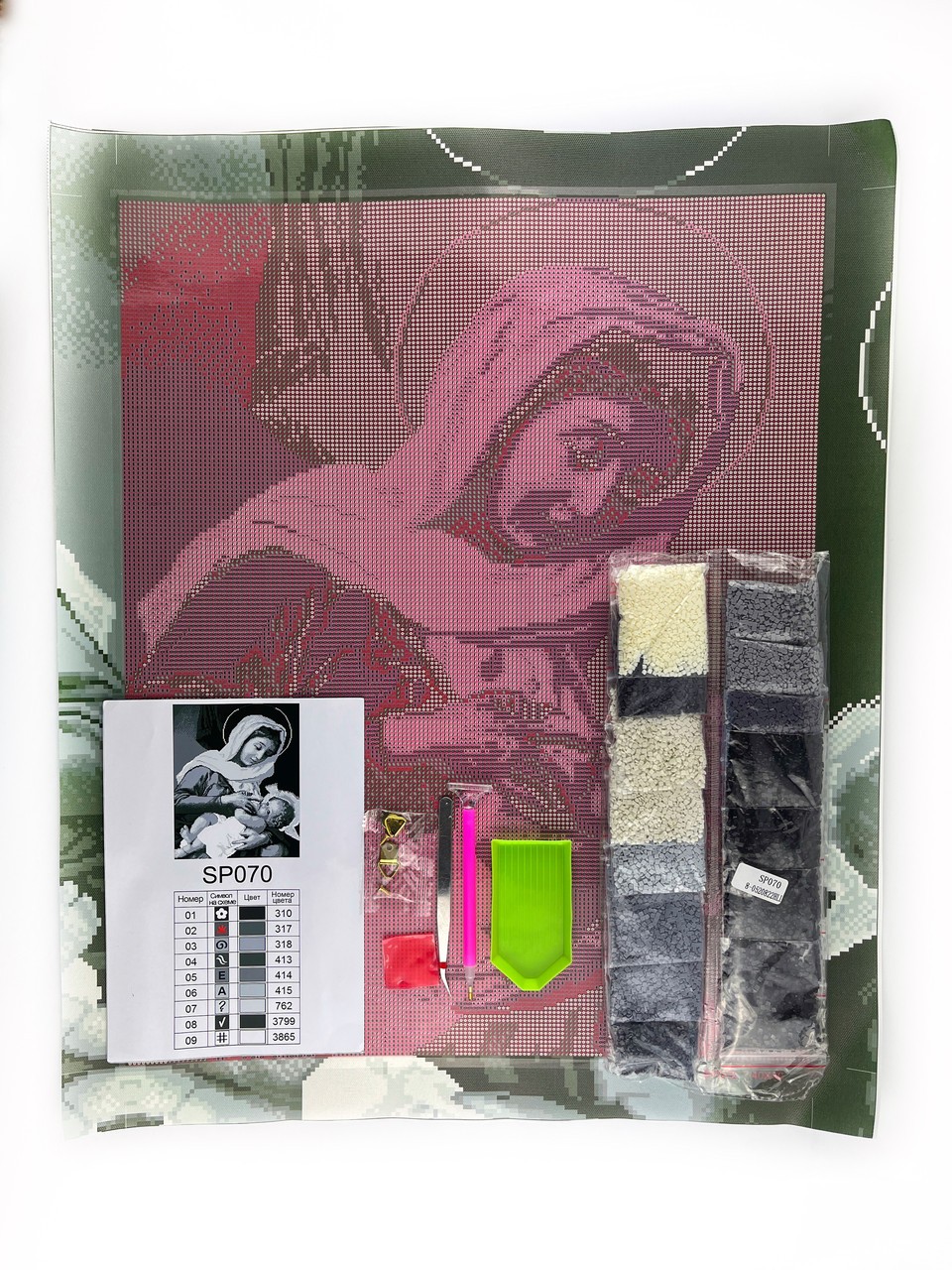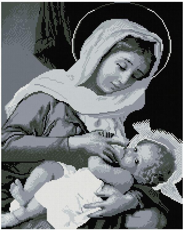 Набір алмазної мозаїки 40х50 Ікона Годувальниця сіра монохром SP070