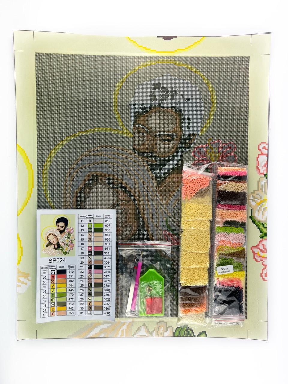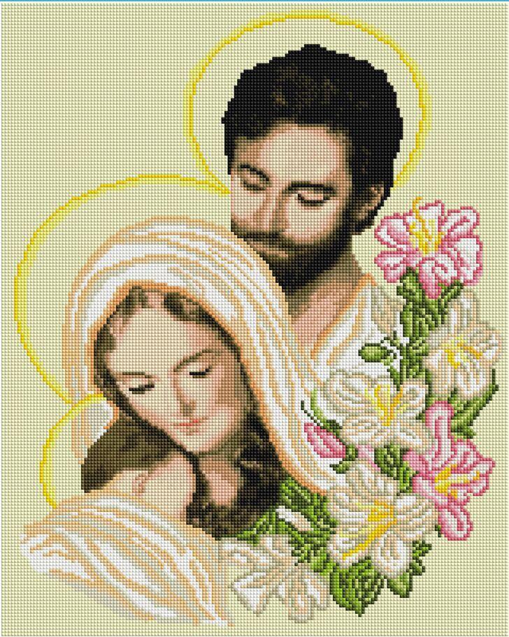 Набір алмазної мозаїки 40х50 Ікона Свята сім’я в ліліях SP024