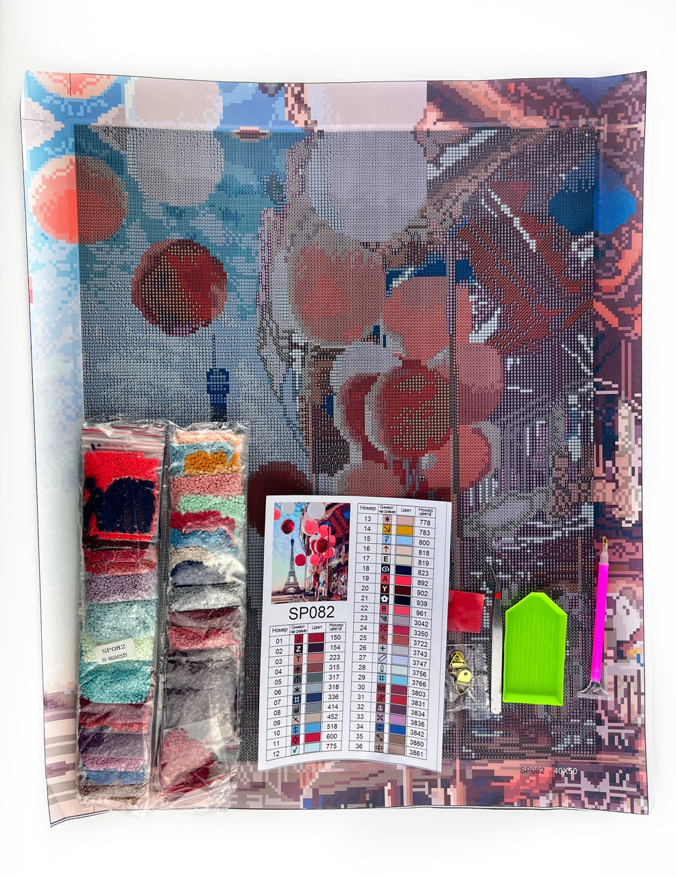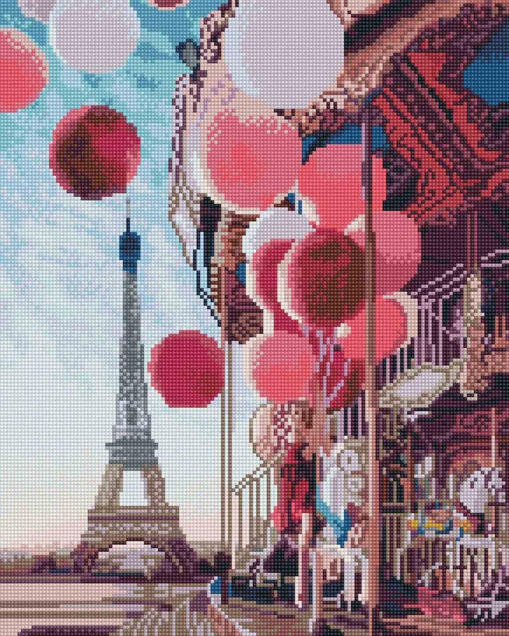 Набір алмазної мозаїки 40х50 Повітряні кульки і Париж SP082