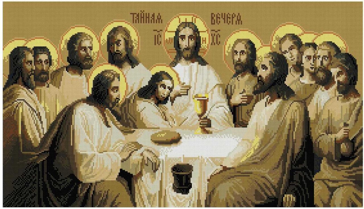 Набір алмазної мозаїки 40х70 Ікона Таємна вечеря золота монохром SS810