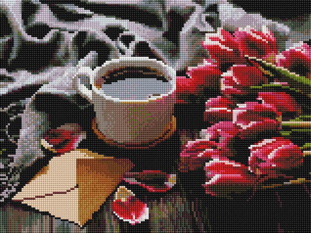 Набір алмазної мозаїки Кава і тюльпани 30х40 ST460