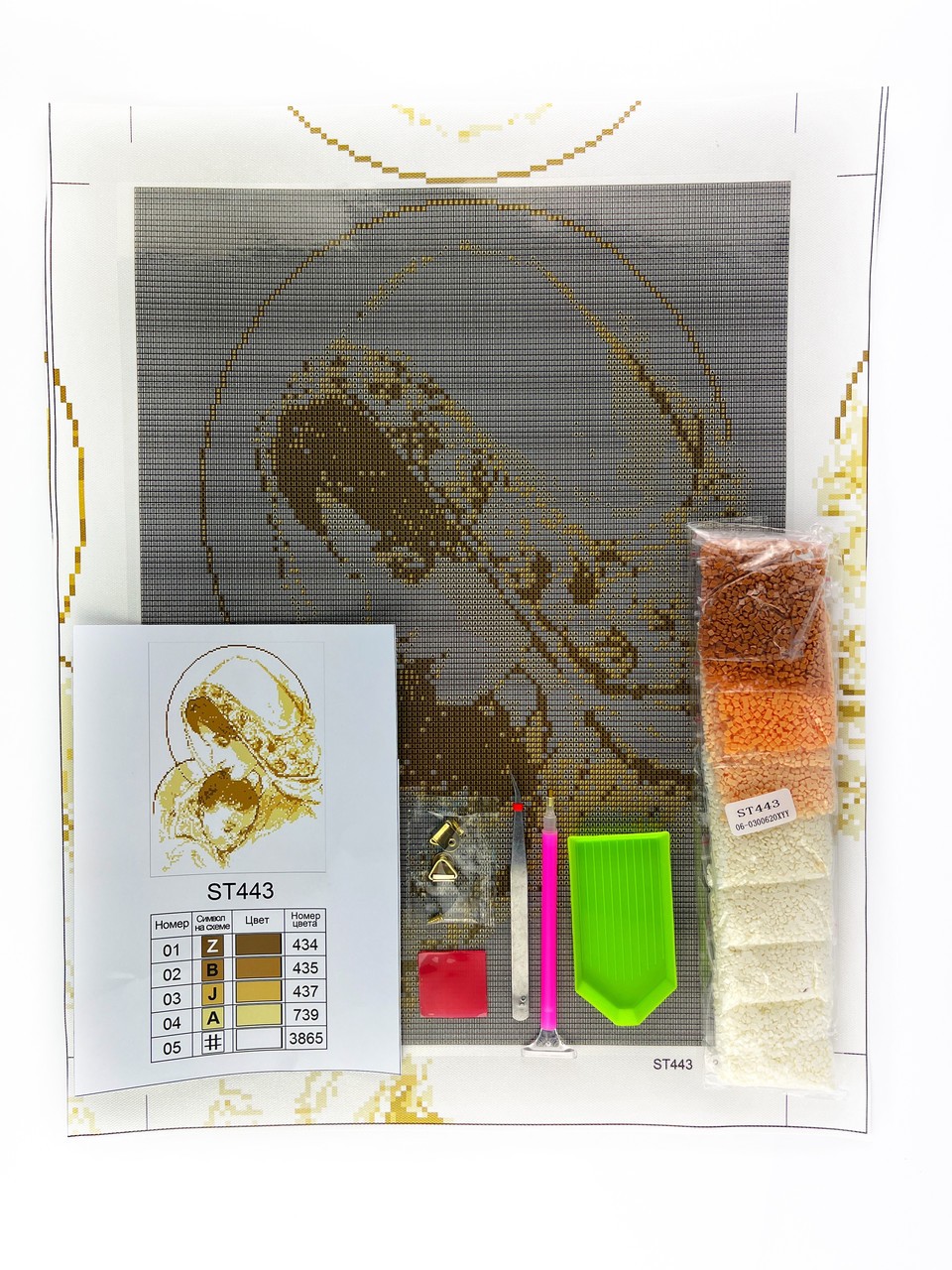 Набір алмазної вишивки 30х40 Ікона Діва Марія з Ісусом золота ST443