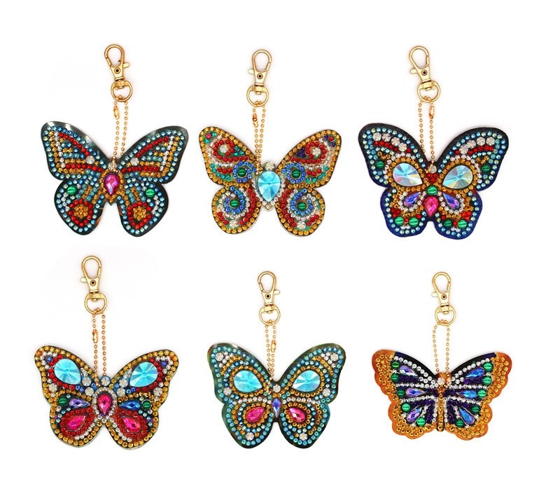 Набір брелків для алмазної мозаїки Метелики 6шт BR22