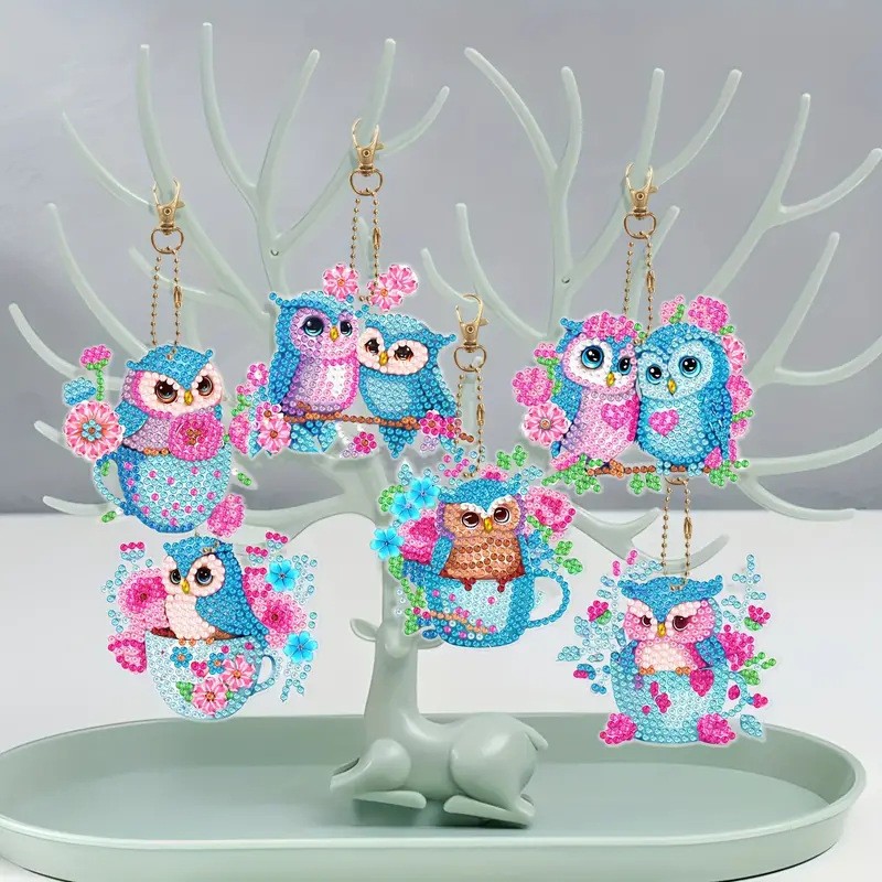Набір брелків для алмазної мозаїки Совенята 6шт BR36