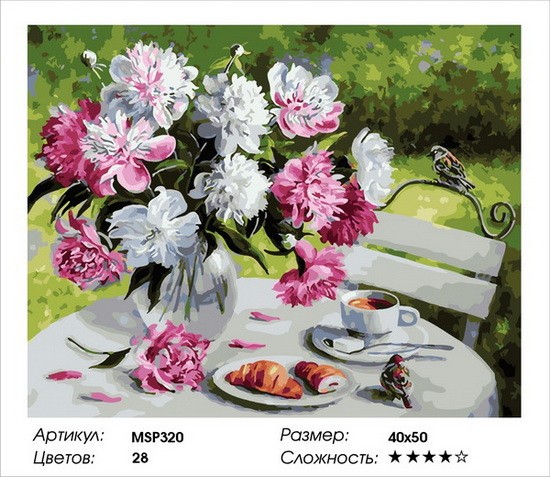 Набір для малювання за номерами 40х50 Півонії MSP320 з підрамником