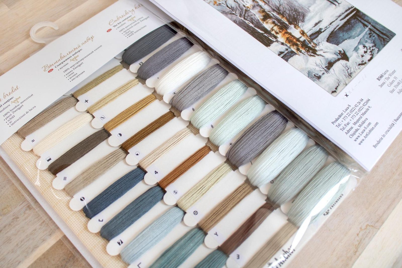 У набір входить: інструкція, кольорова символьна схема, тканина для вишивання, голка