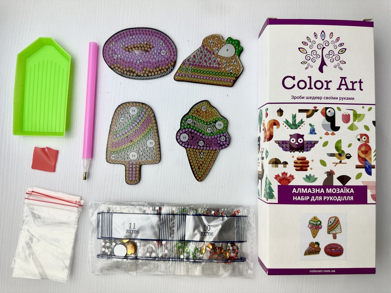 Набір магнітиків для алмазної мозаїки Солодощі 4шт FM52260.00₴ Заповнення: Повне; Форма кристалів: круглі Набір магнітиків для алмазної мозаїки Солодощі 4шт FM52 кількість Додати в кошик Артикул: FM52 Категорія: Діамантова мозаїка Бренд: ColorArt Бренд: ColorArt Опис Додаткова інформація Опис Набір магнітиків для алмазної мозаїки ColorArtє цікавою новинкою в рукодільному мистецтві. Яскраві, блискучі та кольрові магнітики, зроблені своїми руками стануть прикрасою для ваших холодильників та будь яких інших металевих предметів. Атакож можуть стати гарним подарунком для рідних та близьких. У набір для рукоділля входить – основа (магнітик) для викладки 4шт – набір алмазиків в прономерованих пакетиках – інструменти для викладки Замовляйте магнітики ColorArt, отримуйте масу задоволення від процесу викладання алмазної мозаїки та результату виконаної роботи. Додаткова інформація Товари для творчості Товари для творчостідіамантова мозаїка Країна виробникКитай Супутні товари Набір для алмазної мозаїки Осінній парк 40х50см SP055 550.00₴ Купити Набір для алмазної мозаїки Дівчинка ангелочок 40х50см SP048 550.00₴ Купити Алмазна мозаїка 30х40см Перший поцілунок ST430 400.00₴ Купити Набір брелків для алмазної мозаїки Єдинорожки 5шт BR21 Набір магнітиків для алмазної мозаїки Фастфуд 4шт FM51