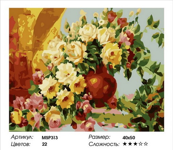 Набір малювання по номерах Троянди у вазі MSP313 з підрамником