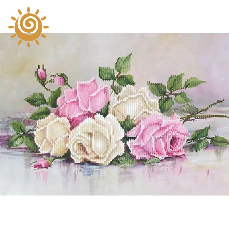 Схема для вишивки бісером Шебби-шик. Букетик нанесена на високоякісний атлас, ущільнена флізеліном. Канва не провисає під вагою бісеру, краї оброблені оверлоком. Повна вишивка. Можливий підбір бісеру чеського виробництва Preciosa №10 та голкою.
