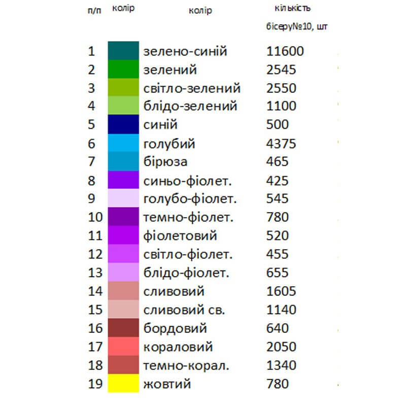 При бажанні комплектуємо чеським бісером з 15% запасом, а також ниткою для бісеру та голкою.