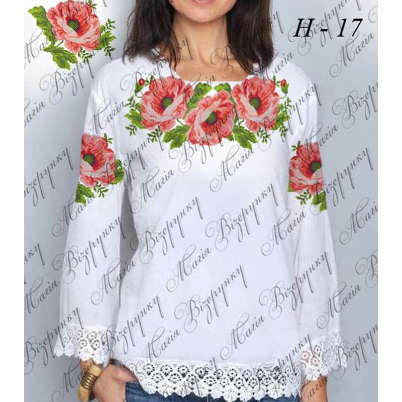 Заготовка складається з двох полотен 75*75 см на передню частину і на спинку (без вишивки) та двох полотен 75*65 см на рукави. В комплект входить інструкція в якій вказано кольори бісеру і його кількість, рекомендовані номери ниток DMC. Дану заготовку ви можете скроїти за своїми розмірами та фасоном.