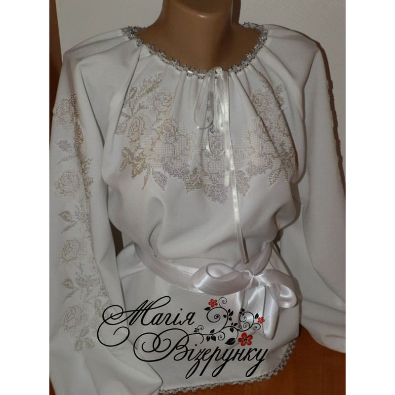 Заготовка складається з двох полотен 75*75 см на передню частину і на спинку (без вишивки) та двох полотен 75*65 см на рукави. В комплект входить інструкція в якій вказано кольори бісеру і його кількість, рекомендовані номери ниток DMC. Дану заготовку ви можете скроїти за своїми розмірами та фасоном.