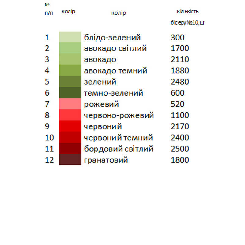 При бажанні комплектуємо чеським бісером з 15% запасом, а також ниткою для бісеру та голкою.