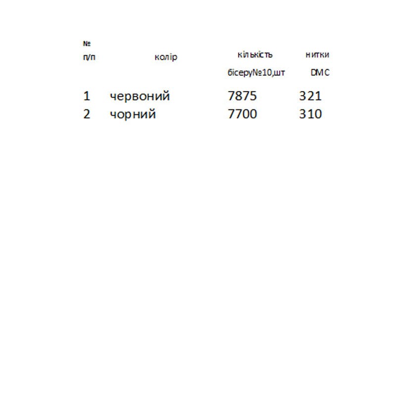 При бажанні комплектуємо чеським бісером з 15% запасом, а також ниткою для бісеру та голкою