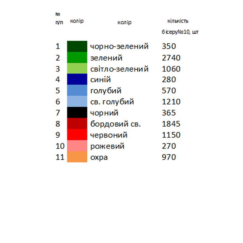 При бажанні комплектуємо чеським бісером з 15% запасом, а також ниткою для бісеру та голкою.