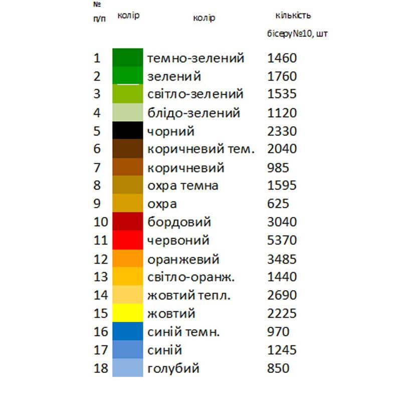 При бажанні комплектуємо чеським бісером з 15% запасом, а також ниткою для бісеру та голкою.