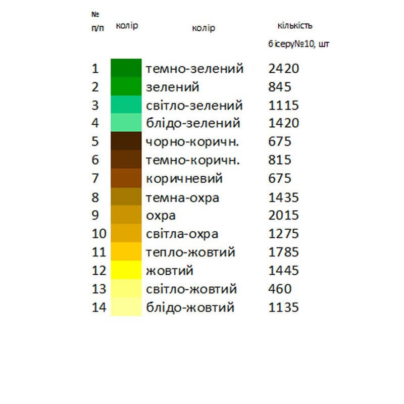 При бажанні комплектуємо чеським бісером з 15% запасом, а також ниткою для бісеру та голкою.